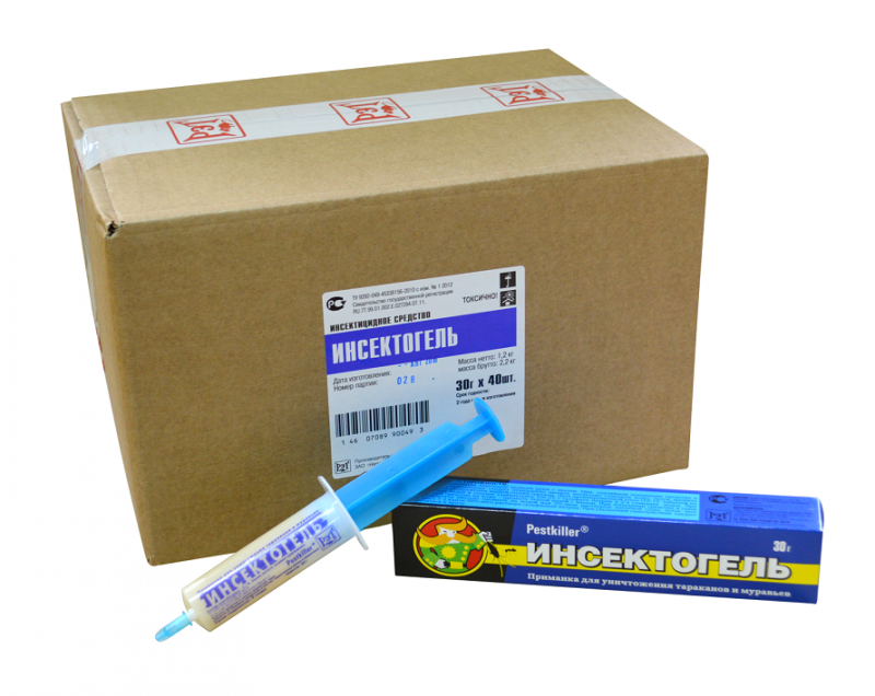Средство инсектицидное «ИНСЕКТОГЕЛЬ», далее – (средство) представляет собой инсектицидно-аттрактивную приманку в виде желто-коричневой гелеобразной массы. Средство содержит в качестве действующего вещества (ДВ) – дифлубензурон (0,1 %), борную кислоту и различные пищевые привлекатели. Средство обладает высокой привлекательностью и явным инсектицидным действием (кишечно-контактным) по отношению к тараканам и муравьям, вызывающим гибель 100% тараканов на 5-е сутки и гибель 100% рабочих особей муравьев еще до истечения 1-х суток после контакта с гелем. Средство предназначено для уничтожения синантропных тараканов и муравьевна объектах различного назначения, включая жилые помещения, на предприятиях общественного питания, в детских (за исключением игровых) и лечебных учреждениях, на предприятиях общественного питания, в магазинах, на складах профессиональным контингентом в практике медицинской дезинсекции,а также населением в быту.